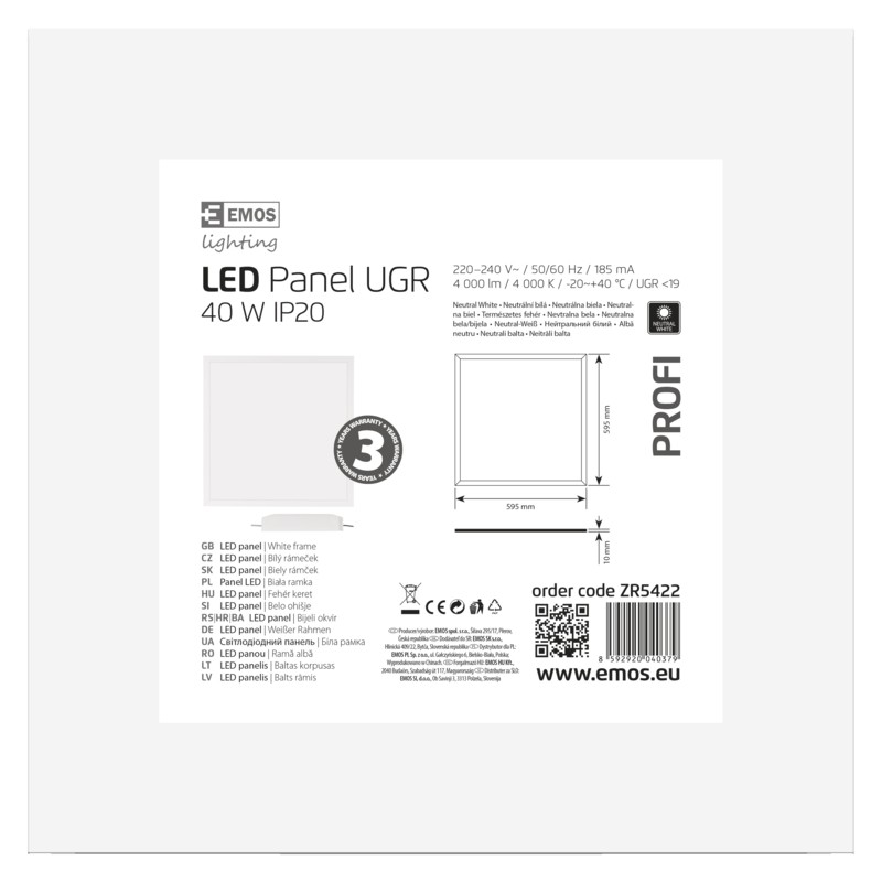 Led panel 600x600mm, 40W/220-240V, nestmívatelný. Vhodný pro montáž do podhledů, ale také jako přisazený, popřípadě závěsný.Svítidlo disponuje indexem oslnění UGR menším, než je hodnota 19. To znamená, že může být bez obav použito třeba do učeben a kanceláří.