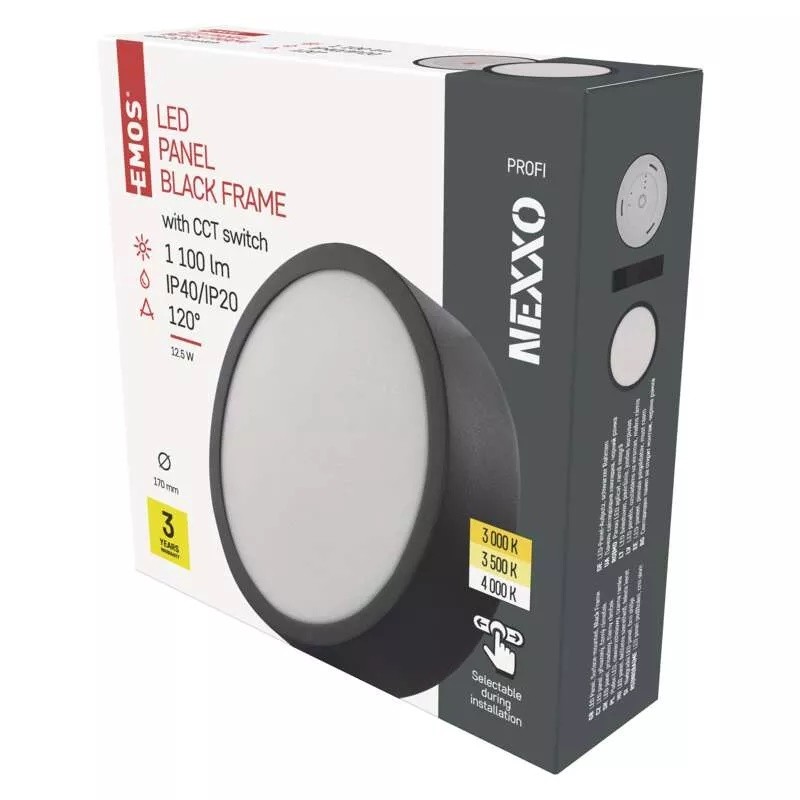 Kulatý přisazený mini LED panel 12,5W NEXXO s možností přednastavit, pomocí přepínače, teplotu chromatičnosti světla na hodnoty 3000K, 3500K nebo 4000K . Instalace je možná na stěnu i na strop. Součástí balení je nestmívatelný zdroj pro napájení panelu. Světelné zdroje v tomto panelu nelze měnit!