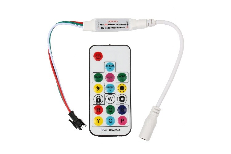 RGB RF (radiová frekvence) ovladač s dálkovým ovládaním . Dálkovým ovladačem lze nastavit intenzitu světla, změnu barev dle předprogramovaných módů. Ovladač nemusí přímo vidět na příjmač.