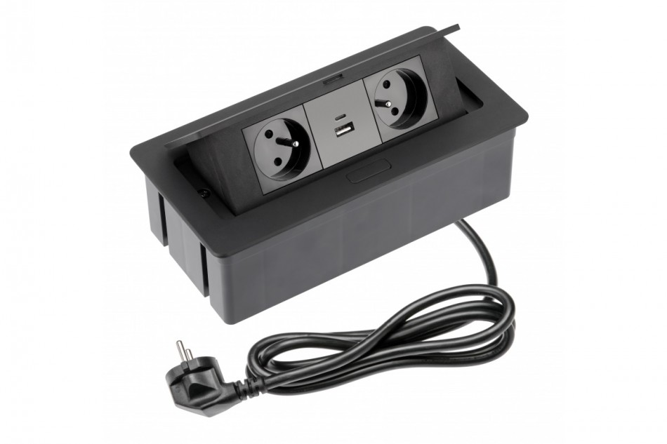 Zásuvka rozbočovací 2 x kulatá a 2 x USB stolní, výklopná - ...
