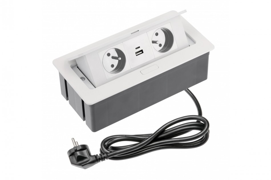 Zásuvka rozbočovací 2 x kulatá a 2 x USB stolní, výklopná - ...