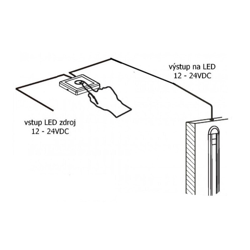 Dotykový snímač, který slouží jak k zapnutí a vypnutí, tak i k regulaci jasu jakéhokoliv světelného či jiného zařízení s provozním napětím 12-24VDC.