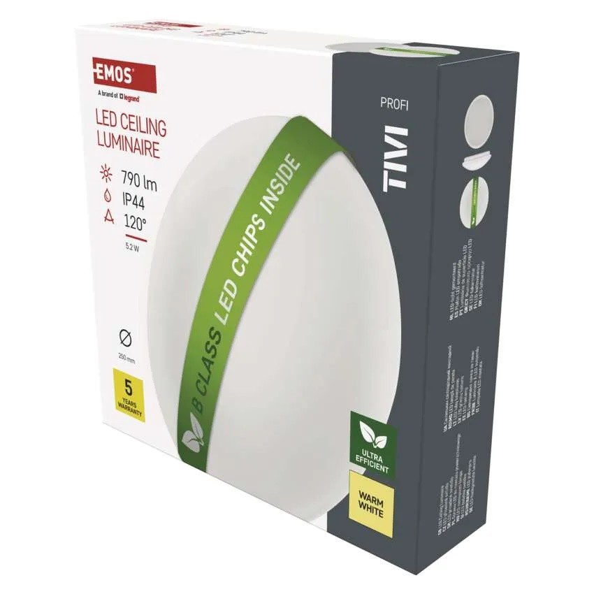 Led světlo ultra úsporné přisazené, kulaté, 250x70mm, 5,2W, 790lm, WW, IP44