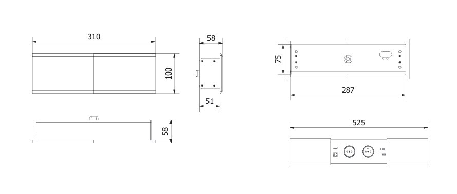 - produkt: zásuvka 2 x kulatá + 2 x USB a RJ45, HDMI, stolní vestavná