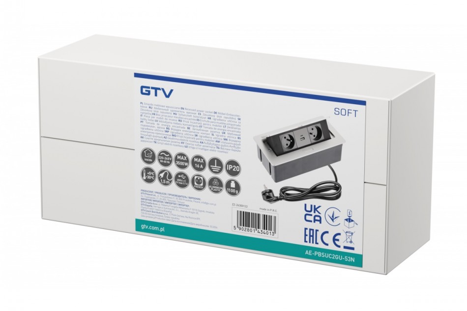 Zásuvka rozbočovací 2 x kulatá a 2 x USB stolní, výklopná - ...