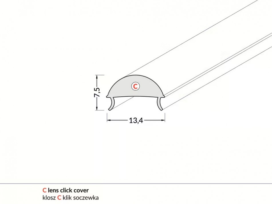 Naklapávací difuzor čočka 60° pro Alu profil R60, P11, R45, Z11, P12,Z12. Cena uvedena za 1m.