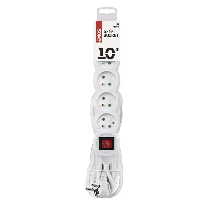 Prodlužovací kabel bílý, 5 zásuvek, 5m , s vypínačem, max. ...