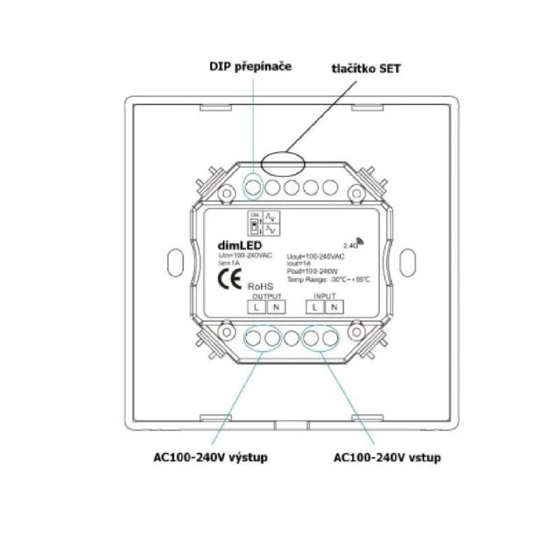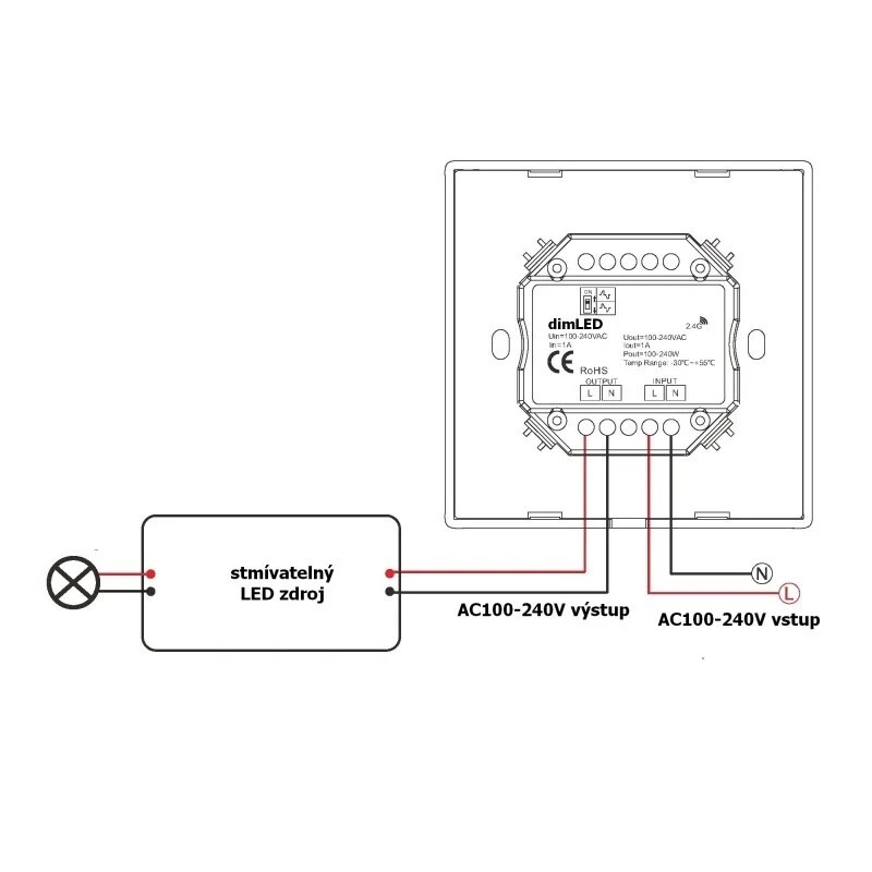 Vlastnosti a výhody systému dimLED: Stmívání je stabilní a spolehlivé, dosah ovladače ≤ 30M. Stmívání v rozmezí 0-100%, stmívání měkké, bez blikání. Při zapnutí dojde k pozvolnému rozsvícení, při vypnutí dojde k pozvolnému setmění.