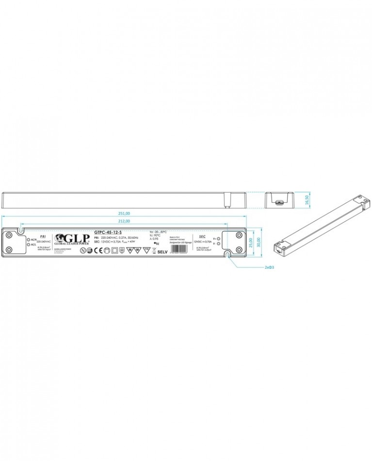 LED elektronický spínaný zdroj (trafo) určený pro vnitřní použití, speciálně do extra nízkých podhledů.