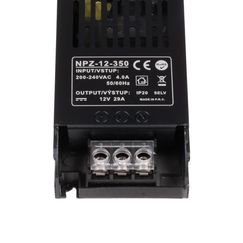 LED elektronický spínaný zdroj (trafo) určený pro vnitřní použití.