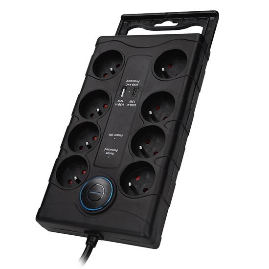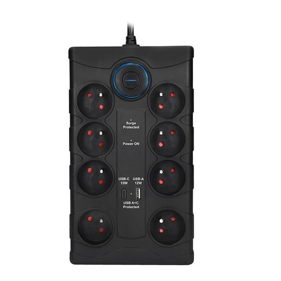 - počet zásuvek: 8× 2P + PE, USB A 2,4A 12W, USB C 3A 15W, max.17W