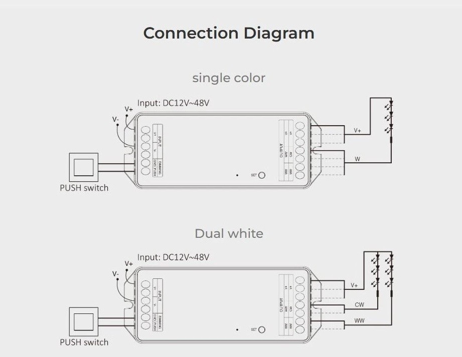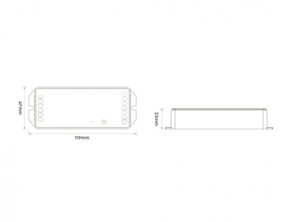 Radiofrekvenční přijímač stmívač pro LED produkty může být ukrytý (za zdí, sádrokartónem či ve skříni), není nutná přímá viditelnost přijímače pro ovladač a lze ovládat: