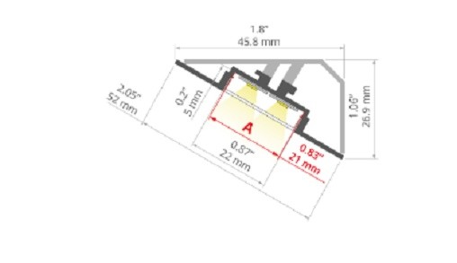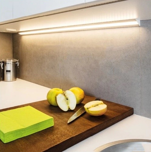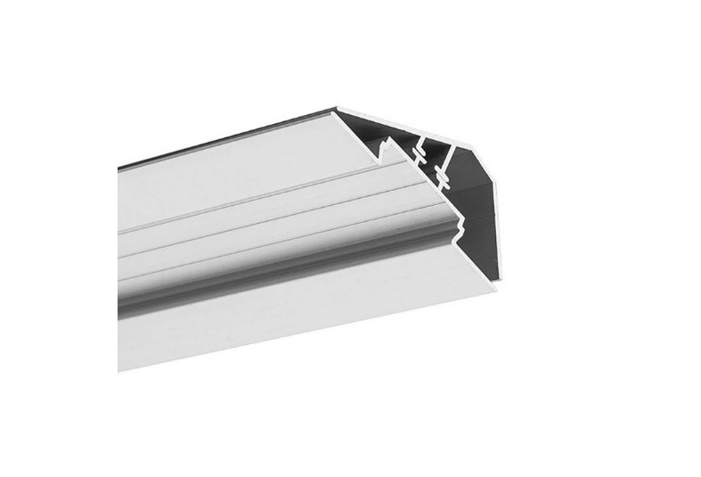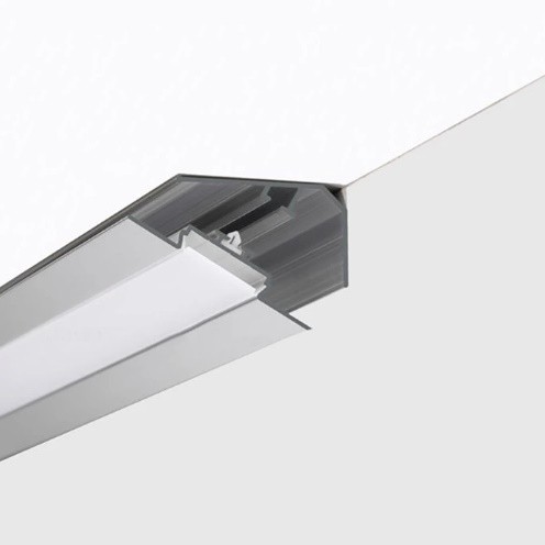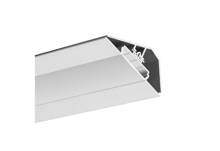 Montáž v rozích se svícením pod úhlem 30 stupňů, prostor pro vedení kabelů, produkt se dodává jako komplet (montážní profilová část, světelná profilová část a spojovací prvky KLIP).
