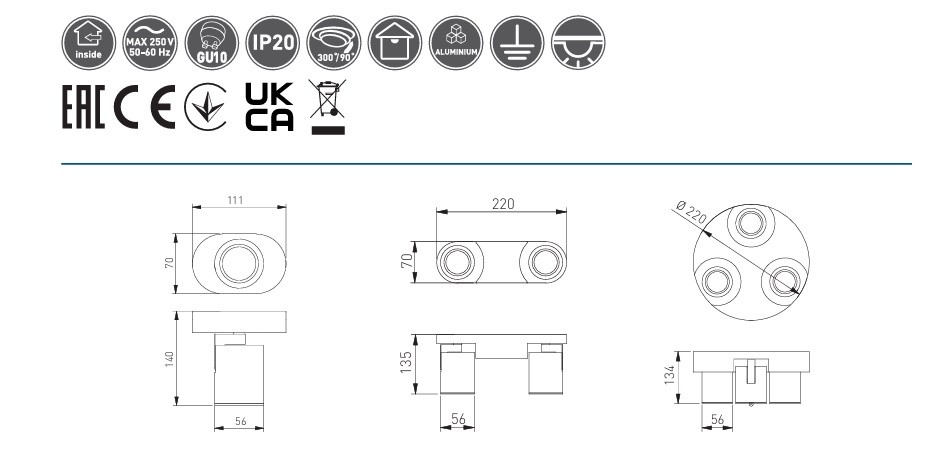 Duální svítidlo s paticí 2xGU10, perfektní design, vhodné do moderních interiérů.