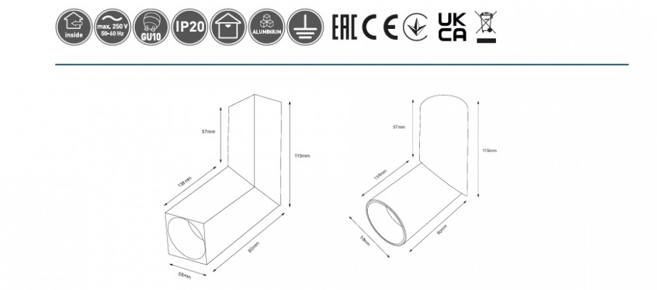 Samostatné nastavitelné bodové svítidlo s paticí GU10, perfektní design, vhodné do moderních interiérů.