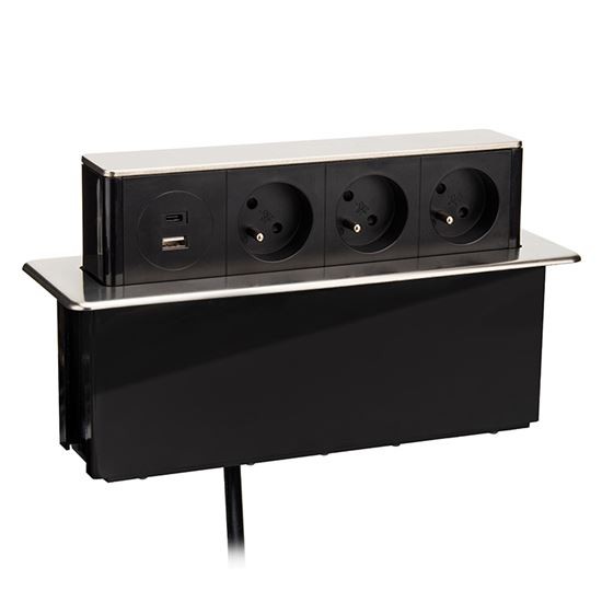 Zásuvka rozbočovací 3 x kulatá a 2 x USB stolní, výsuvný box - ...